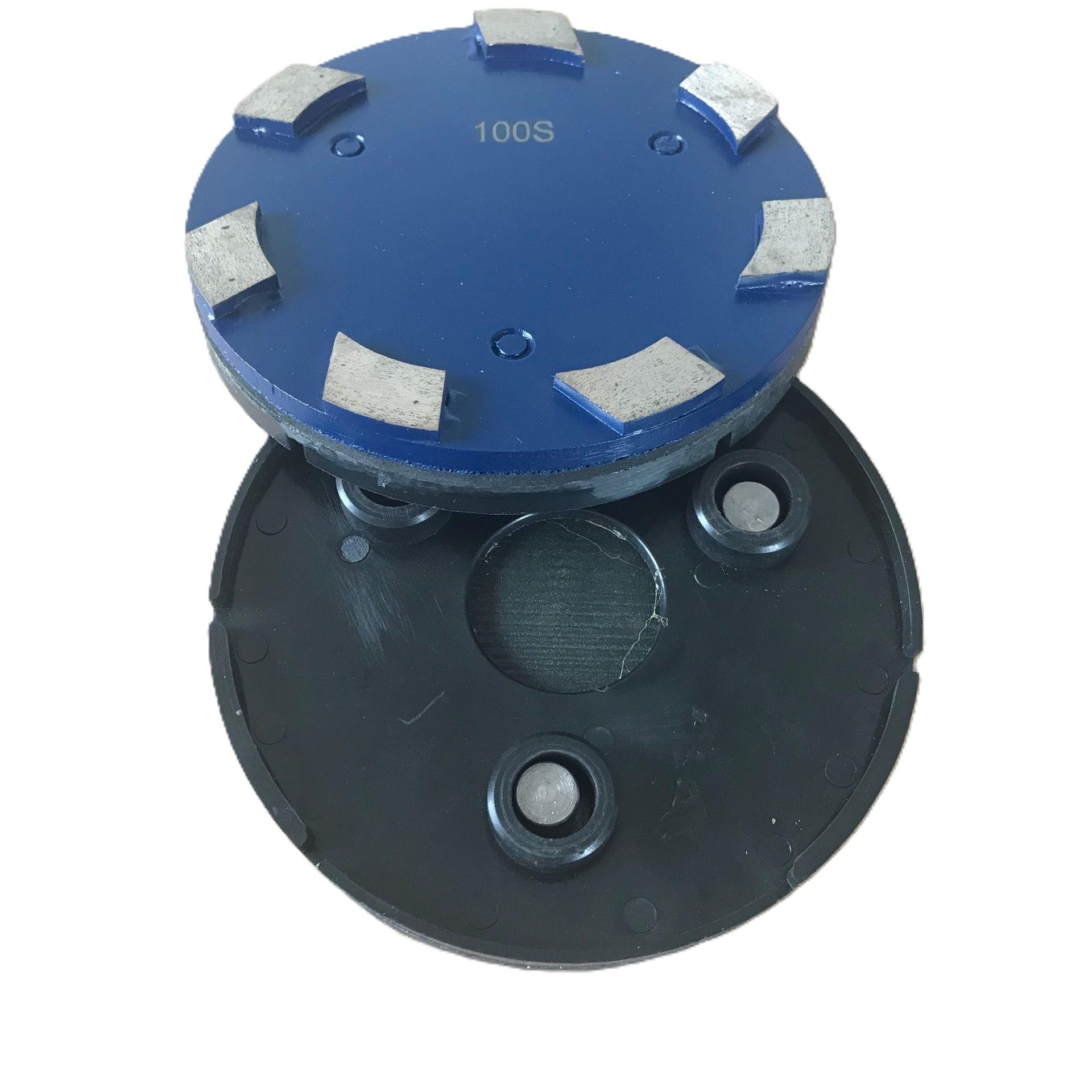 3-hole metal bond grinding tool for concrete grinding, coating removal and mastic removal.